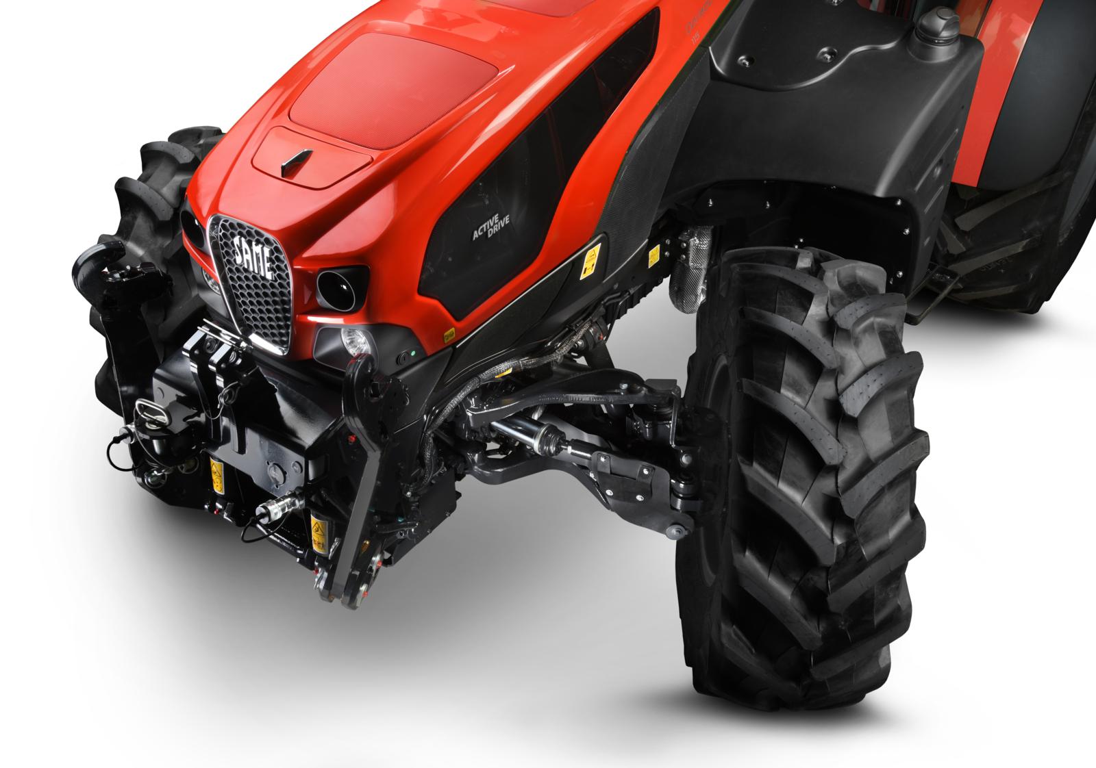 Anche in termini di assali, freni e dispositivi di sicurezza, la dotazione di serie dei Dorado CVT Stage V è superlativa, mentre tra gli allestimenti opzionali l’assale anteriore ActiveDrive rappresenta il massimo della tecnologia applicata al trattore agricolo. Come da tradizione SAME, anche sui Dorado CVT Stage V ci sono di serie i freni su tutte le 4 ruote per migliorare sicurezza e feeling di guida. Per agevolare e velocizzare le manovre a fine campo poi c’è la funzione SDD che, quando attivata e lavorando a basse velocità di avanzamento, dimezza i giri del volante necessari per sterzare completamente le ruote. Sempre di serie, è presente l’inserimento elettroidraulico della trazione anteriore e del bloccaggio del differenziale, funzioni che, mediante il sistema opzionale ASM, sono automatizzabili in relazione alla velocità di avanzamento e all’angolo di sterzo.
